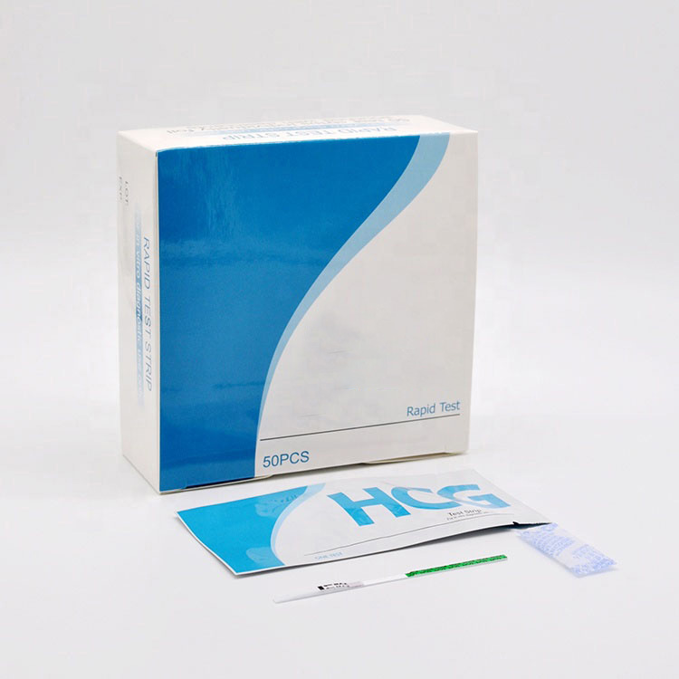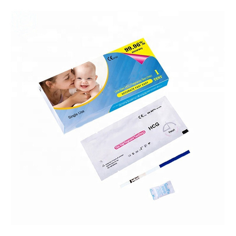 Test de bandelette de grossesse HCG de précision de 99,9 % : Le test de grossesse HCG est un test immunologique chromatographique rapide pour la détection qualitative de la gonadotrophine chorionique humaine (hCG) dans des échantillons d'urine ou de sérum afin de faciliter la détection précoce de la grossesse par les utilisateurs professionnels et domestiques.